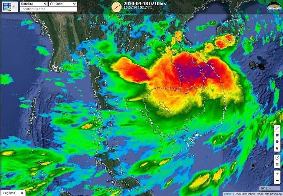 วันนี้ (18 ก.ย.) แล้วจะเข้าสู่ภาคตะวันออกเฉียงเหนือในช่วงค่ำวันเดียวกัน และ เคลื่อนตัวผ่านภาคเหนือในช่วงวันที่ 19-20 ก.ย. ทำให้ประเทศไทยมีฝนตกหนักถึงหนักมาก และ มีลมแรงบริเวณภาคเหนือ ภาคตะวันออกเฉียงเหนือ ภาคกลาง ภาคตะวันออก และภาคใต้ ส่วนขอบของพายุได้มาถึงแล้ว ฝนใน จ.พิษณุโลก เริ่มตกในหลายพื้นที่ขณะนี้ รวมไปถึงจังหวัดต่าง ๆ ภาคอีสาน