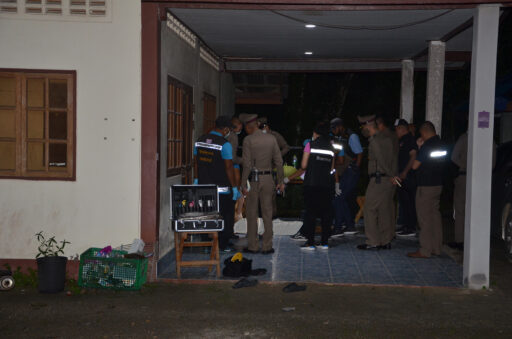 ที่เกิดเหตุเป็นบ้านปูนชั้นเดียวอยู่ริมถนน บริเวณหน้าบ้านพบศพ ด.ต.สุรเชษฐ์ นาคนาศักดิ์ ตำแหน่ง ผบ.หมู่ กก.5 บก.ปทส. อายุ 44 ปี เจ้าของบ้าน สวมเสื้อยืดคอกลมลายดำขาว นุ่งกางเกงขาสั้นสามส่วน นอนหงายเสียชีวิต สภาพศพมีบาดแผลถูกยิงด้วยอาวุธปืนลูกซองยาว เข้าบริเวณหน้าอกขวา กระสุนไปตุงที่ไหล่ซ้ายด้านหลัง 1 นัด จากการตรวจสอบบริเวณที่เกิดเหตุ ไม่พบปลอกกระสุนปืนลูกซองแต่อย่างใด พบแต่เพียงปลอกกระสุนปืนสั้นขนาด 11 มม. ตกอยู่บริเวณพงหญ้าหน้าบ้าน 2 ปลอก คาดว่าเป็นปลอกกระสุนปืนของผู้ตาย เนื่องจากผู้ตายมีอาวุธปืนประจำกายขนาด 11 มม.วางอยู่ในห้องนอน
