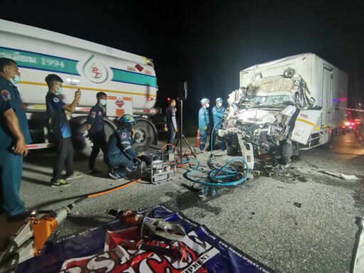 เมื่อเวลาประมาณ เวลา 20.00 น. วันที่ 15 ตุลาคม 2563 พ.ต.ท.วัชรพงษ์ ธรรมวงศ์ สว.(สอบสวน) สภ.พรหมพิราม จ.พิษณุโลก รับแจ้งมีเหตุรถบรรทุก 6 ล้อชนท้ายรถเทรลเลอร์ บนถนนสายพิษณุโลก – อุตรดิตถ์ กม.ที่ 253+600 บ้านเขาน้ำสุดมุ่งหน้าจุดตรวจท่างาม ต.ทับยายเชียง ทำให้มีผู้เสียชีวิตติดอยู่ภายในรถ จึงประสานให้เจ้าหน้าที่กู้ภัยมูลนิธิประสาทบุญสถานนำอุปกรณ์ตัดถ่างไปที่เกิดเหตุ ก่อนเดินทางไปตรวจสอบพร้อมแพทย์เวร รพ.พรหมพิราม พบ รถบรรทุก 6 ล้อ ยี่ห้ออีซูซุ สีขาว ทะเบียน 81-4546 แพร่ ชนอัดก๊อปปี้อยู่กับท้ายรถเทรลเลอร์บรรทุกตู้คอนเทนเนอร์ 22 ล้อ ยี่ห้อ UD Quester สีขาว ทะเบียน 70-3175 ชัยนาท อยู่บนถนนเลนซ้ายสุด มีผู้เสียชีวิตเป็นหญิง 1 รายติดอยู่ในที่นั่งคนขับรถบรรทุก 6 ล้อ เจ้าหน้าที่กู้ภัยจึงใช้อุปกรณ์ตัดถ่างนำร่างออกมาให้ตำรวจและแพทย์ชันสูตร