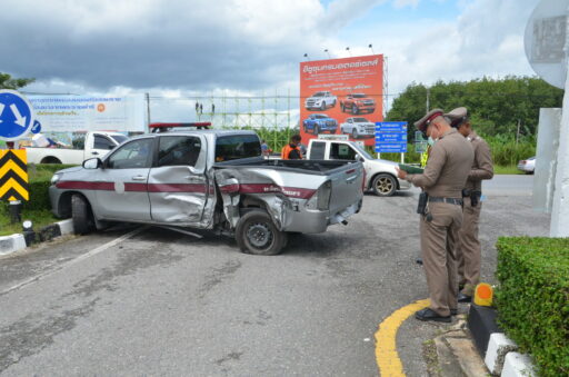 เมื่อวันที่ 18 ต.ค. ผู้สื่อข่าวรายงานมาว่า ร.ต.อ.รักเกียรติ โชติศักดิ์ รอง สว.(สอบสวน) สภ.เมืองนครศรีธรรมราช รับแจ้งมีเหตุรถยนต์กระบะชนกับรถยนต์ตำรวจจราจร สภ.เมืองนครศรีธรรมราช ทำให้มีผู้ได้รับบาดเจ็บบริเวณสามแยกทางเข้าท่าอากาศยานนครศรีธรรมราช ถนนสายบางปู-เบญจมฯ หมู่ 10 ต.ปากพูน อ.เมือง จ.นครศรีธรรมราช เมื่อเวลา 10.30 น.วันที่ 17 ต.ค.ที่ผ่านมา จึงเดินทางไปตรวจสอบพร้อมด้วย พ.ต.ท.จริญ ขาวเอี่ยม รอง ผกก. (สอบสวน) และเจ้าหน้าที่มูลนิธิประชาร่วมใจ พบรถยนต์กระบะสายตรวจจราจรของ สภ.เมืองนครศรีธรรมราช ยี่ห้อโตโยต้า รุ่นไฮลักซ์ สีบรอนซ์เงิน ทะเบียน 6กฆ-1005 กทม.เสียหลักขวางทางเข้าสนามบิน สภาพรถประตูหลังด้านซ้ายถูกชนพังยับ และห่างไปเล็กน้อยบนถนนหน้าสนามบินพบรถยนต์กระบะยี่ห้อมิตซูบิซิ ไทรทัน สีขาว ทะเบียน ผข-8046 สุราษฎร์ธานี สภาพรถกระโปรงรถด้านหน้าพังยุบ