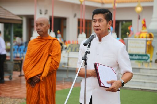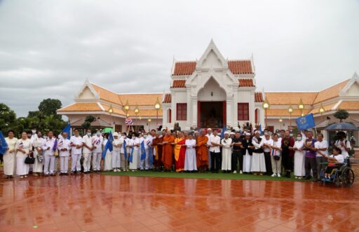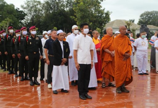 หลายภาคส่วนร่วมต้อนรับคณะพระธุดงค์เพื่อสันติภาพโลกและรับมอบธงสันติภาพโครงการ “เดินด้วยกัน นำพาสันติ” ที่ศาลสมเด็จพระนเรศวรมหาราช ในเขตพื้นที่พระราชวังจันทน์