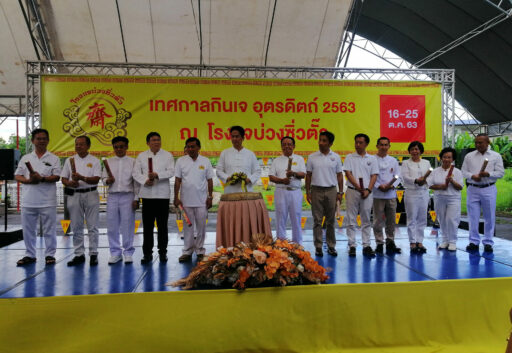 นายผล ดำธรรม ผวจ.อุตรดิตถ์ เป็นประธานเปิดกิจกรรม งานเทศกาลกินเจ จังหวัดอุตรดิตถ์ปี 2563 พร้อมด้วย นายสหวิช อภิชัยวิศรุตกุล ปจ.อุตรดิตถ์ โดยมี นายวีระ รัตนะศิริกุลชัย ประธานมูลนิธิอุตรดิตถ์สงเคราะห์ นายสุรชัย ประธานโรงแจบ่วงซิ่วตั๊ว คณะกรรมการโรงแจบ่วงซิ่วตั๊ว นายประพลวัต ปัญญายงค์ ประธานหอการค้าฯ และผู้ที่ถือศีลกินเจในช่วงเทศกาลกินเจ เข้าร่วมกิจกรรมที่ โรงแจบ่วงซิ่วตั๊ว ถนนอินใจมี อ.เมืองอุตรดิตถ์