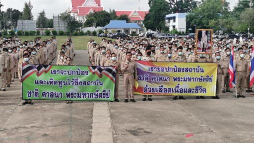 กำนัน ผู้ใหญ่บ้าน พร้อมสมาชิกสมาคมกำนันผู้ใหญ่บ้านจังหวัดพิษณุโลก กว่า 500 คน ร่วมกันประกาศเจตนารมณ์ แสดงพลังป้องกัน ปกป้อง ชาติ ศาสนา พระมหากษัตริย์ พร้อมทั้งอยากเห็นสังคมกับมาสงบ