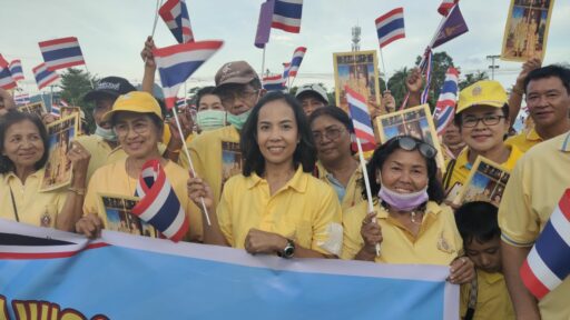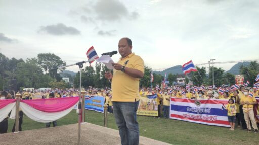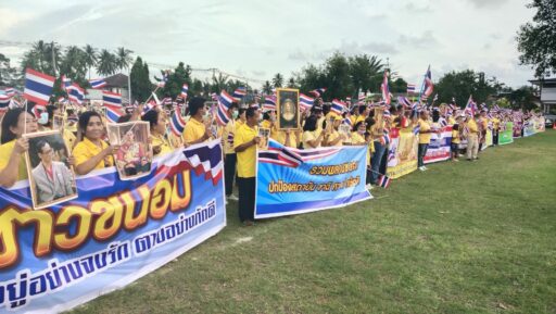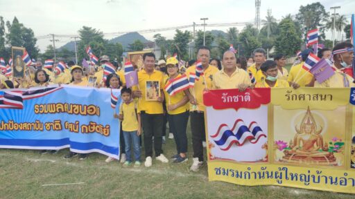 ชาว อ.ขนอม สวมเสื้อเหลืองออกมาปกป้องสถาบันหลักของชาติ
