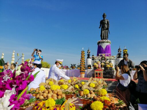 อำเภอนครไทย จังหวัดพิษณุโลก จัดงานประเพณีปักธงชัย ทำบวงสรวงพ่อขุนศรีอินทราทิตย์ ปฐมบรมกษัตริย์แห่งกรุงสุโขทัย หญิงสาวชาวนครไทย 1,200 คน รำบวงสรวงอย่างยิ่งใหญ่