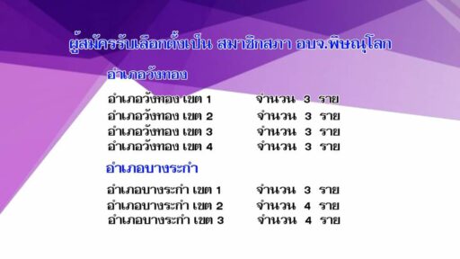 อบจ.พิษณุโลก สรุปผลการรับสมัครนายกและสมาชิก อบจ.