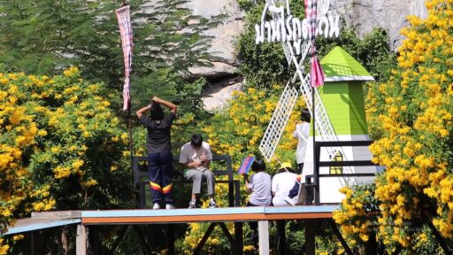 วันที่ 21 พฤศจิกายน 2563 บรรยากาศการท่องเที่ยวในช่วงวันหยุดชดเชยเทศกาลสงกรานต์ที่ทางรัฐบาลกำหนดให้หยุดตั้งแต่วันที่ 19 พ.ย. – 20 พ.ย. และต่อด้วยวันเสาร์อาทิตย์ทำให้เป็นวันหยุดยาว จึงมีประชาชนเดินทางออกมาท่องเที่ยวตามต่างจังหวัดพิษณุโลก โดยที่ตำบลบ้านมุง อำเภอเนินมะปราง จ.พิษณุโลก เป็นจุดหนึ่งที่นักท่องเที่ยวเดินทางมาท่องเที่ยวสัมผัสธรรมชาติ ชมความงามของเขาหินปูนและดอกไม้นานาพรรณ ที่ผู้ประกอบการสถานที่ท่องเที่ยวปลูกไว้ ให้นักท่องเที่ยวได้เที่ยวชมในช่วงวันหยุดยาวและตลอดหน้าหนาวนี้ โดยเฉพาะที่บ้านไร่ภูตะวัน ต.บ้านมุง อ.เนินมะปราง เป็นจุดหนึ่งที่นักท่องเที่ยวให้ความสนใจมาท่องเที่ยว ซึ่งปลูกต้นทองอุไรไว้และกำลังออกดอกสวยงาม โดยมีหลังฉากเป็นเขาหินปูนสร้างความสวยงามอย่างมาก จึงมีนักท่องเที่ยวแวะมาท่องเที่ยวถ่ายภาพกันไว้เป็นที่ระลึกจำนวนมาก