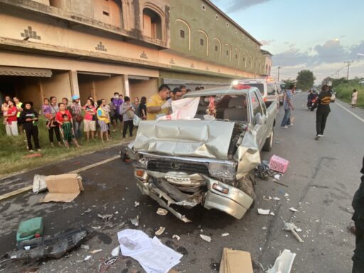 หนุ่มรับเหมาก่อสร้างขับกระบะชนประสานงากับรถที่สวนทางมาเสียชีวิตคาที่