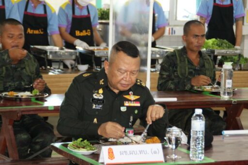 ในการนี้ ผู้ช่วยผู้บัญชาการทหารบกและคณะได้ร่วมรับประทานอาหารกลางวันกับทหารใหม่ด้วย สำหรับเมนูอาหารกลางวันนั้นประกอบไปด้วย ลาบคั่วหมู ต้มแซบไก่ หมูยอทอด และขนมบวดฟักทอง สร้างความปลาบปลื้มใจให้กับทหารใหม่ผลัดที่ 2 ประจำปี 2563 ทั้ง 117 นาย เป็นอย่างยิ่ง ที่ผู้บังคับบัญชาชั้นสูงของกองทัพบกมีความห่วงใย รวมทั้งร่วมรับประทานอาหารกับพวกตน หลังจากเสร็จสิ้นการปฏิบัติภารกิจตรวจเยี่ยมหน่วยกองทัพภาคที่ 3 จ.พิษณุโลกแล้ว ผู้ช่วยผู้บัญชาการทหารบกได้เดินทางไปปฏิบัติภารกิจในพื้นที่ จ.เชียงใหม่ ต่อไป