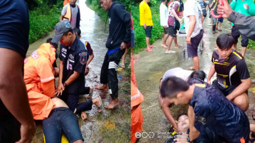 สองสาวขับรถข้ามคลองสะพานถูกน้ำป่าพัดพังตกน้ำดับสลดหนึ่งราย