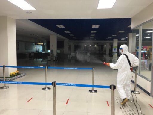 ท่าอากาศยานพิษณุโลก ดำเนินการฉีดพ่นยาฆ่าเชื้อไวรัส COVID-19 สร้างความเชื่อมั่นและเสริมความปลอดภัยในสุขอนามัยของเจ้าหน้าที่ และผู้โดยสารและผู้มาใช้บริการ