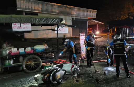 เมื่อเวลา 18.00 น. วันที่ 4 ธ.ค.พ.ต.ท.วสุ เพ็งที สว.(สอบสวน) สภ.เนินมะปราง จ.พิษณุโลก รับแจ้งมีเหตุยิงกันที่บริเวณตลาดนัดบ้านซำรัง หมู่ 15 ต.ชมพู ไปตรวจสอบพร้อมด้วย พ.ต.อ.ชนะชัย แสงศิริ ผกก.สภ.เนินมะปราง จ.พิษณุโลก พ.ต.ท.ชาญชัย หาแก้ว รอง ผกก.ป., พ.ต.ท.ธนู ขำโอด รอง ผกก.(สอบสวน) ตำรวจชุดสืบสวน สภ.เนินมะปราง ตำรวจชุดสืบสวนภูธรจังหวัดพิษณุโลก และ พ.ต.ท.หญิง สุนันทา ศรีพันนาม นวท.สบ 3 กลุ่มงานสถานที่ตรวจเหตุ ศูนย์พิสูจน์หลักฐาน 6 พบเพียงรอยเลือดและรถจักรยานยนต์ยี่ห้อยามาฮ่า ฟีโน่ สีขาวดำ ทะเบียน กษท 66 พิจิตร ล้มอยู่หน้ารถเข็นขายขนมจีน และมีรอยเลือดอยู่ตามพื้นดินจำนวนหนึ่ง รองเท้าแตะสองคู่ และเศษหัวกระสุน 1 ชิ้น สอบสวนเบื้องต้นทราบว่า ชาวบ้านได้ช่วยกันปั้มหัวใจผู้บาดเจ็บคือ น.ส.ดวงจันทร์ กลิ่นกระโทก อายุ 36 ปี อยู่บ้านเลขที่ 369 หมู่ 4 ต.ชมพู อ.เนินมะปราง แม่ค้าขายขนมจีนที่ถูกคนร้ายยิงกระสุนเข้าที่ท้ายทอย 1 นัดจนบาดเจ็บสาหัส ก่อนรถกู้ชีพ อบต.ชมพู จะช่วยเหลือนำส่งโรงพยาบาลเนินมะปราง พร้อมกับ นายประจวบ กลิ่นกระโทก อายุ 55 ปี บิดาซึ่งถูกยิงบาดเจ็บที่แขนและไหปลาร้าข้างซ้าย ล่าสุดนางสาวดวงจันทร์ เสียชีวิตแล้วเมื่อเวลา 21.30 น. ส่วนพ่อแพทย์ให้การรักษาจนปลอดภัย