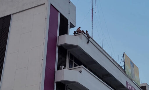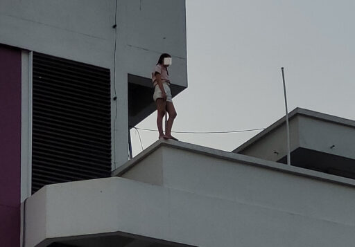 สาววัยเบญจเพสเครียดขึ้นดาดฟ้าโรงพักจะกระโดดแต่ ตร.รวบตัวไว้ได้