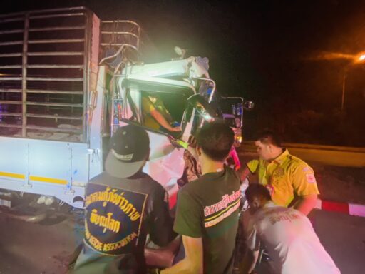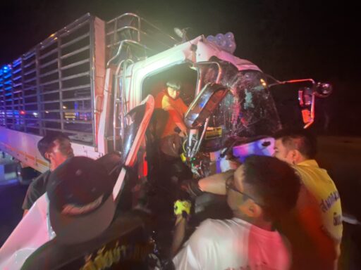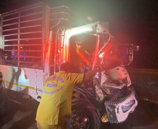 รถหกล้อชนท้ายรถพ่วง 18 ล้อ คนขับถูกอัดก็อปปี้เจ็บสาหัส