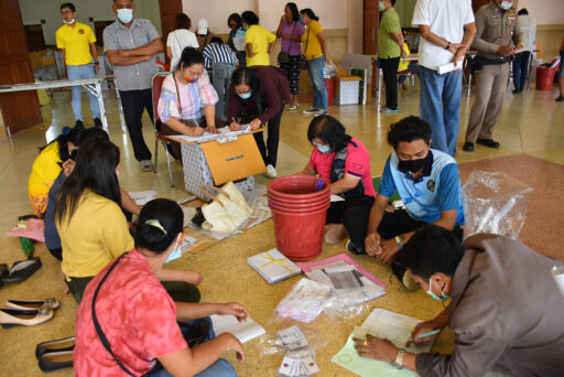 วันนี้ (19 ธ.ค.63) เป็นวันก่อนการเลือกตั้งนายกและสมาชิกสภาองค์การบริหารส่วนจังหวัด ทางคณะกรรมการการเลือกตั้งประจำ อบจ.นครศรีธรรมราช จึงได้กำหนดให้คณะอนุกรรมการการเลือกตั้งระดับอำเภอทั้ง 23 อำเภอ รวมจำนวน 42 เขตการเลือกตั้ง ได้ส่งมอบหีบบัตรเลือกตั้งและวัสดุอุปกรณ์การเลือกตั้งให้แก่คณะกรรมการประจำหน่วยเลือกตั้ง โดยในส่วนของอำเภอเมืองนครศรีธรรมราช ซึ่งมีจำนวน 7 เขตเลือกตั้ง ได้มีการรับมอบหีบบัตรและวัสดุอุปกรณ์การเลือกตั้งที่หอประชุมเมือง สวนสมเด็จพระศรีนครินทร์ 81 (ทุ่งท่าลาด) เริ่มตั้งแต่เวลา 08.00 น.ถึง 15.00 น. โดยได้นัดหมายเวลาการรับหีบบัตรและอุปกรณ์การเลือกตั้งให้เหลื่อมกัน 1 ชั่วโมงเพื่อลดการแออัดของบุคคลเพื่อป้องกันการแพร่ระบาดของโรคโควิด-19