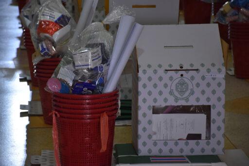 โดยเขตเลือกตั้งที่ 1 นัดหมายเวลา 08.00 น. เขตเลือกตั้งที่ 2 นัดหมายเวลา 09.00 น. เขตเลือกตั้งที่ 3 นัดหมายเวลา 10.00 น. ตามลำดับ ซึ่งบรรยากาศเป็นไปอย่างคึกคัก มีคณะกรรมการประจำหน่วยเลือกตั้งเดินทางมารับอุปกรณ์อย่างพร้อมเพรียง มีการตรวจนับวัสดุอุปกรณ์ทุกชิ้นอย่างละเอียด ซึ่งแต่ละหน่วยมีวัสดุอุปกรณ์จำนวน 42 รายการ ที่สำคัญ อาทิ บัตรเลือกตั้งนายก อบจ.(สีเขียวคราม) /บัตรเลือกตั้งสมาชิกสภา อบจ.(สีส้ม) /หีบบัตรเลือกตั้ง 3 ใบ(หีบบัตรเลือกตั้งนายกฯ 1 ใบ หีบบัตรเลือกตั้งสมาชิก ส.อบจ. 1 ใบ และหีบบัตรสำหรับผู้ใช้สิทธิที่อุณหภูมิร่างกายเกิน 37.2 องศา 1 ใบ) แผ่นกระดาษขีดคะแนน /เจลล้างมือ 4 ขวด /หน้ากากอนามัย 50 ชิ้น/เครื่องวัดอุณหภูมิดิจิทัลแบบยิงหน้าผาก 1 เครื่อง เป็นต้น เมื่อตรวจนับวัสดุอุปกรณ์ครบแล้วคณะกรรมการประจำหน่วยเลือกตั้งได้ลงลายมือชื่อกำกับด้วย จากนั้นมีการขนย้ายวัสดุอุปกรณ์ดังกล่าวไปเก็บรักษาไว้ที่ปลอดภัยที่สุด จากนั้นในวันเลือกตั้ง 20 ธันวาคม 25863 จึงมีการเบิกมาใช้ในการเลือกตั้งก่อนเวลาเลือกตั้ง