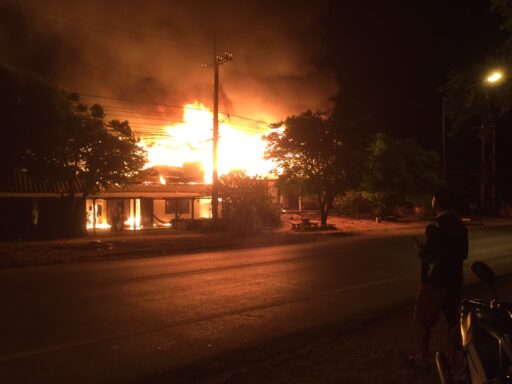 ตำรวจวังทอง พร้อมเจ้าหน้าที่กู้ภัยบูรพา เจ้าหน้าที่ป้องกันและบรรเทาสาธารณภัย เร่งช่วยเหลือได้ฉีดน้ำสกัดเพลิงลุกไหม้ บ้านเรือนประชาชน ที่ ต.ท่าหมื่นราม อ.วังทอง จ.พิษณุโลก ได้รับความเสียหาย 2 หลัง คาดเหตุเกิดจากไฟฟ้าลัดวงจร เสียหายนับล้านบาท