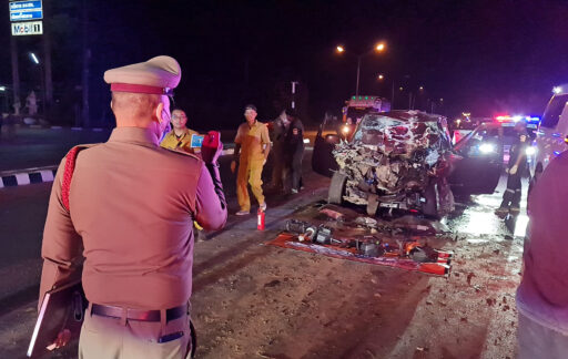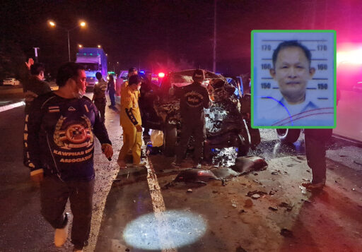 หนุ่มใหญ่ข้าราชการสำนักงานทรัพยากรน้ำขับกระบะกลับจากงานศพ พุ่งชนท้ายรถพ่วง 22 ล้อ ถูกอัดก็อปปี้เสียชีวิตคาที่