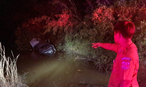 หนุ่มซิ่งรถเก๋งตกคูน้ำร่างกระเด็นขาขาดตายสยอง