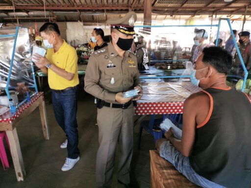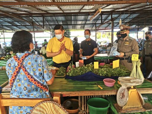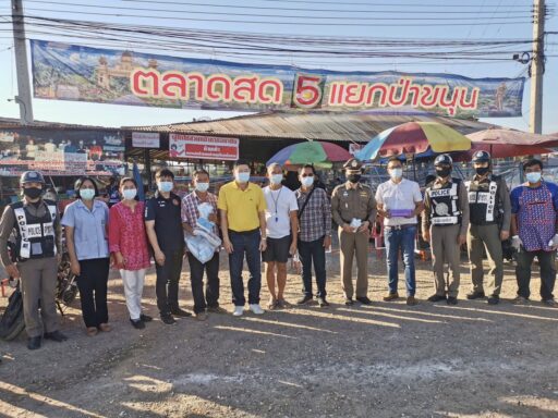 “อัยการอ่อง” ร่วมกับตำรวจแจกแมสก์ ในตลาดสด 5 แยกป่าขนุน สร้างความมั่นใจให้ประชาชน หลังถูกปิด 7 วัน ด้วยพิษโควิด-19