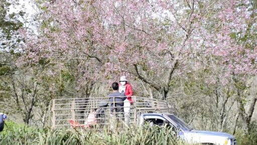 ที่อุทยานแห่งชาติภูหินร่องกล้า ต.เนินเพิ่ม อ.นครไทย จ.พิษณุโลก ช่วงใกล้วันหยุดยาวเทศกาลส่งท้ายปีเก่าต้อนรับปีใหม่ มีนักท่องเที่ยวจำนวนมากพาครอบครัวเดินทางขึ้นไปชมความสวยงามของ “ภูเขาสีชมพู” ชมดอกพญาเสือโคร่ง หรือ ดอกซากุระเมืองไทย ที่ยอดภูลมโล สูงกว่า 1,700 เมตร จากระดับน้ำทะเลปานกลาง ใจกลางอุทยานแห่งชาติภูหินร่องกล้า พื้นที่รอยต่อของ 3 จังหวัด พิษณุโลก เพชรบูรณ์ เลย ท่ามกลางอุณหภูมิเฉลี่ย 17 – 18 องศาเซลเซียส