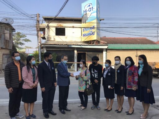 ขณะเดียวกัน ดร.สุรสิทธิ์ ลาภอินทรีย์ ผู้อำนวยการโรงเรียนเฉลิมขวัญสตรี พร้อมด้วย นางสาวกนกดาว เดชก้อง ว่าที่ร้อยตรี ดร.ธีระชัย ช่วงบุญศรี นางสาวสุกัญญา แดงเรือง รองผู้อำนวยการโรงเรียนเฉลิมขวัญสตรี ได้เดินทางไปเยี่ยม นายธนภัทร ริ้วงาม นักเรียนชั้น ม.4/2 ร.ร.เฉลิมขวัญสตรี บุตรของ นายจิรศักดิ์ และนางอรธิดา ริ้วงาม เจ้าของร้านบอสแอนด์บีม เพื่อให้กำลังใจและมอบเงินช่วยเหลือเบื้องต้น โดยนายธนภัทร เปิดเผยว่า ขณะเกิดเหตุตนอยู่บนชั้นสองของบ้านที่อยู่หน้าโกดัง กำลังเรียนออนไลน์อยู่ พอทราบมีเหตุเพลิงไหม้โกดังก็รีบลงมาจากบ้าน และช่วยบิดาและมารดาไปนำตัวปู่กับย่าที่อยู่ในบ้านที่อยู่ด้านหลังโกดังออกมาได้ทัน ก่อนที่ไฟจะลุกลามไหม้โกดังและบ้านอย่างรวดเร็ว ดร.สุรสิทธิ์ ลาภอินทรีย์ ผู้อำนวยการโรงเรียนเฉลิมขวัญสตรี กล่าวว่า ทางโรงเรียนจะช่วยเหลือเพิ่มเติมโดยการเปิดรับบริจาคจากคณะครูและนักเรียนของโรงเรียนเพื่อนำเงินมาช่วยเหลืออีกครั้ง