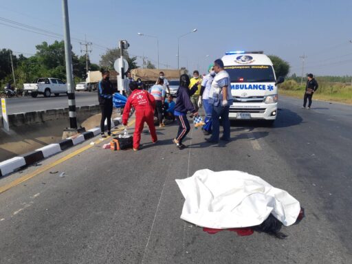 กระบะซิ่งชนรถ จยย.พ่วงข้างขับตัดหน้าพ่อแม่ตายลูกวัย 5 ปีเจ็บ