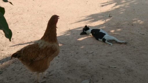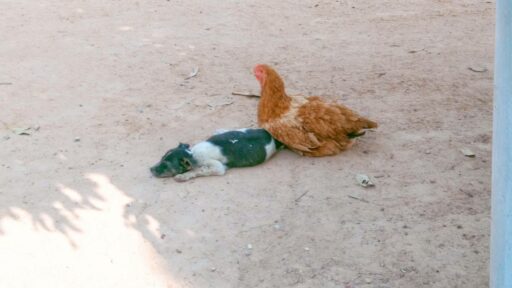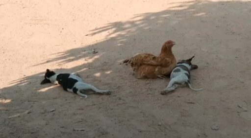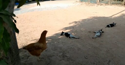 รักต่างสายพันธุ์ แม่ไก่เฝ้าเลี้ยงลูกหมา 5 ตัว