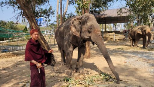 ครูบาบุญล้อม หน่อแก้วโพธิญาณ ผู้อำนวยการศูนย์สวนพระพุทธบูชาเฉลิมพระเกียรติ เปิดเผยว่า ช้างทุกตัวมีใบอนุญาตครอบครองถูกต้องตามกฎหมาย ซึ่งการทำบุญใหญ่ครั้งนี้ของญาติโยมที่ช่วยกันบริจาคเงินมาให้ ถือว่าเป็นบุญใหญ่ได้กุศลแรง เพราะช้างเป็นสัตว์ใหญ่ เป็นสัตว์คู่บ้านคู่เมืองของคนไทย ช้างตัวหนึ่งจะกินผลไม้เป็นอาหารถึงวันละ 400 กิโลกรัม ทางวัดก็ต้องดำเนินการเรื่องค่าใช้จ่ายเหล่านี้ทั้งหมด ในแต่ละวันก็จะมีญาติโยมแวะมาทำบุญช่วยเหลือเป็นค่าเลี้ยงดูและค่าอาหารให้กับสัตว์ทุกชนิดที่อยู่ในความดูแลด้วย สำหรับพื้นเพของตนเดิมเป็นคน จ.กำแพงเพชร เคยเปิดบริษัทรับเหมาก่อสร้าง วันหนึ่งกำลังครุ่นคิดอยู่กับภาระงานที่รับผิดชอบ อยู่ ๆ ก็มีเสียงผุดขึ้นมาในหัวว่า “งานที่ท่านทำอยู่นี้มันไม่เสร็จหรอก เสร็จงานนี้ก็ต้องย้ายไปทำงานใหม่” ทำให้เกิดความคิดที่ว่า แล้วงานอะไรที่ทำแล้วจะสำเร็จ นี่จึงเป็นจุดเปลี่ยนที่ทำให้มาบวชเป็นพระอย่างในปัจจุบันนี้