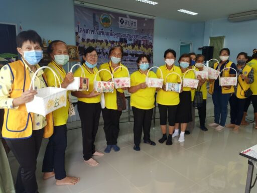 และวันเดียวกันนี้ น.ส.คนึงนิจ นาสมใจ นายกสโมสรไลออนส์พิษณุโลก ภาค 310 A2 ประเทศไทย อดีตครูจิตอาสา ที่สร้างกำลังใจให้กับตนเองในการช่วยเหลือสังคม หลังจากป่วยเป็นโรคมะเร็งมาหลายปี ได้ไปเป็นวิทยากรสอนการสานเส้นพลาสติกสร้างความสุข เป็นรูปทรงต่าง ๆ มีทั้งตะกร้า ที่ใส่แก้ว และภาชนะอื่น ๆ ในรูปแบบทรงกลม ทรงกระบอก และสี่เหลี่ยม รวมทั้งการนำฝาชีมาเพิ่มมูลค่า ให้กับผู้สูงอายุที่เข้าร่วมโครงการ เพื่อนำความรู้นี้ไปต่อยอดสร้างอาชีพสร้างรายได้ให้กับครอบครัว โดย น.ส.คนึงนิจ ได้กล่าวแนะนำตัวกับผู้สูงอายุที่เข้าร่วมกิจกรรมว่า ตนป่วยเป็นโรคมะเร็งลำไส้มาตั้งแต่ปี พ.ศ. 2558 แต่ก็ไม่ท้อชีวิต ไม่นอนรอเป็นผู้ป่วยติดเตียง สร้างกำลังใจให้กับตนเอง ช่วยเหลือสังคมในด้านต่าง ๆ มาตลอด โดยเฉพาะการเป็นวิทยากรสอนอาชีพให้แก่ผู้ที่สนใจ สิ่งที่ภาคภูมิใจคือการเป็นวิทยากรสอนทำดอกไม้จันทน์ในงานพระราชพิธีถวายพระเพลิงพระบรมศพพระบาทสมเด็จพระปรมินทรมหาภูมิพลอดุลยเดช และสอนอาชีพให้แก่ผู้ต้องขังหญิง