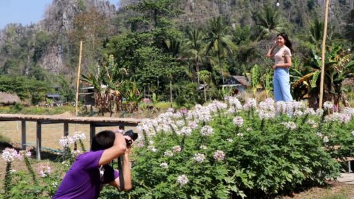 นางปอง สิงห์สถิต เจ้าของไร่เวิ้งพระรถ หมู่ 1 บ้านมุง ต.บ้านมุง เปิดเผยว่า ปกติตนเองจะทำไร่ แต่ได้หันมาปลูกดอกไม้ เพื่อบริการนักท่องเที่ยว เมื่อช่วง 3 เดือนที่ผ่านมา แต่ระหว่างนั้นก็ได้รับกระทบต่อสถานการณ์โควิด ทำให้ยังไม่สามารถเปิดให้บริการนักท่องเที่ยวได้ และในช่วงนี้ในพื้นที่ จ.พิษณุโลก สถานการณ์โควิดถือว่าคลี่คลายไปมาก ทำให้เริ่มมีนักท่องเที่ยวกันบ้างแล้ว ทางสวนตนเองในช่วงนี้มีดอกไม้บานหลายชนิด ที่รอนักท่องเที่ยวมาชมกัน พร้อมกับถ่ายภาพได้อย่างเต็มที่ โดยเฉพาะ ดอกผักเสี้ยนฝรั่ง บานชื่น คอสมอส และดอกไม้อื่น ๆ อีกหลายชนิด ปัจจุบันชาวบ้านบ้านมุงต่างมีความตื่นตัวด้านแหล่งท่องเที่ยวกันมากขึ้น ทำให้มีการสร้างจุดท่องเที่ยวใหม่ ๆ ท่ามกลางหุบเขาหินปูนที่ล้อมรอบตำบล เพื่อดึงดูดให้นักท่องเที่ยวสนใจมาเที่ยวชมกัน เช่นเดียวกับตนที่เห็นความสำคัญ จึงสร้างจุด Landmark ให้นักท่องเที่ยวได้มาแวะชมและถ่ายรูปกับดอกไม้ ประกอบกับบริเวณพื้นที่ของตนมีภูเขาหินปูนรายล้อมสวยงามมากด้วย