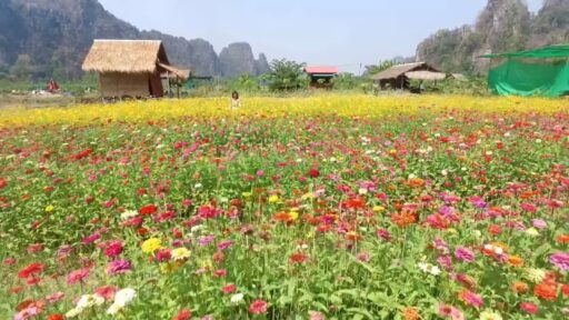ชมความงามทุ่งดอกไม้สลับสีสันสวยสดกลางหุบเขาหินปูน