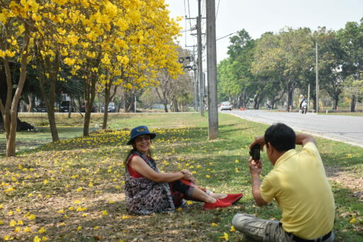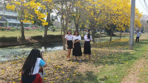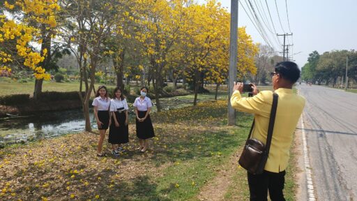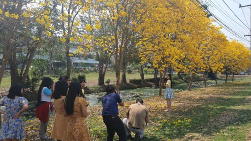 ประชาชนทั่วไปและนักศึกษา หลังทราบข่าวต่างแวะเวียนมาถ่ายภาพกับต้นเหลืองเชียงราย ที่กำลังออกดอกเหลืองอร่าม ภายในมหาวิทยาลัยราชภัฏพิบูลสงคราม อ.เมือง จ.พิษณุโลก คาดว่า ภายใน 1 สัปดาห์ ดอกเหลืองเชียงรายก็จะร่วงโรยไปตามกาลเวลา