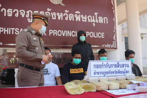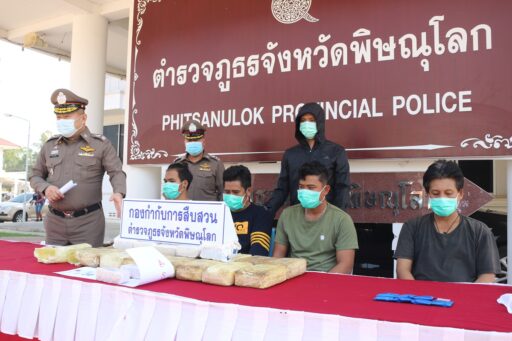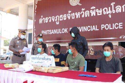 เมื่อเวลา 14.30 น.วันที่ 25 ก.พ. พล.ต.ต.ธวัช วงศ์สง่า ผบก.ภ.จ.พิษณุโลก และ พ.ต.อ.ธีรเดช แจ่มแจ้ง ผกก.สส.ภ.จ.พิษณุโลก กับพวกนำตัว นายยศไกร หรือยศ บุญตรี อายุ 34 ปี บ้านเลขที่ 106 หมู่ 8 ต.ท่าช้าง อ.พรหมพิราม จ.พิษณุโลก นาย ธีรพล หรือเบิร์ด โททรัพย์ อายุ 30 ปี บ้านเลขที่ 18 หมู่ 4 ต.ท่าช้าง อ.พรหมพิราม จ.พิษณุโลก นายศิริวัฒน์ หรือเล็ก พรมป้อม อายุ 25 ปี บ้านเลขที่ 99/2 หมู่ 6 ต.จอมทอง อ.เมือง จ.พิษณุโลก และนายพิทยา หรือช้าง เงี้ยวเกิด อายุ 45 ปี ชาวอำเภอพรหมพิราม ผู้ต้องหาคดียาเสพติดพร้อมของกลางยาบ้า 164,000 เม็ด รถยนต์เก๋งยี่ห้อฮอนด้า รุ่น ซีวิค ทะเบียน กล-6431 พิษณุโลก มาแถลงข่าวผลการจับกุมต่อสื่อมวลชนที่หน้ากองบังคับการตำรวจภูธร จ.พิษณุโลก