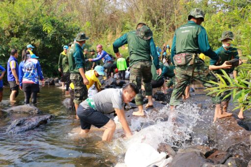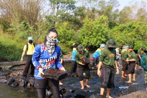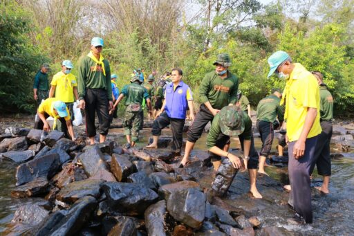 เมื่อเวลา 09.00 น. วันที่ 28 ก.พ. ผู้สื่อข่าวรายงานว่า ที่บริเวณสวนรัชมังคลาภิเษก ลำน้ำเข็ก หมู่ที่ 8 ต.แก่งโสภา อ.วังทอง จ.พิษณุโลก นายบุญเหลือ บารมี นายอำเภอวังทอง พร้อมด้วย ว่าที่ร้อยตรี อิทธิพล บุบผะศิริ รองนายก อบจ.พิษณุโลก นางสาววรรณพร เตชะพันธ์รัตนกุล กำนันตำบลแก่งโสภา ทหารจากกรมรบพิเศษที่ 4 ค่ายสฤษดิ์เสนา ผู้นำท้องที่ผู้นำท้องถิ่นและประชาชนในพื้นที่ตำบลแก่งโสภากว่า 100 คน พร้อมใจช่วยกันนำก้อนหินและกระสอบทรายกั้นเป็นทำนบชั่วคราวบริเวณลำน้ำเข็ก ซึ่งถือเป็นต้นน้ำแม่น้ำวังทอง และเป็นสายน้ำหลักที่ใช้ในการผลิตน้ำประปาหมู่บ้านให้ประชาชนหมู่ 3, 7, 9 ต.แก่งโสภา อำเภอวังทอง ซึ่งมีกว่า 1,000 ครัวเรือน ประชากรกว่า 3,000 คน ได้ใช้อุปโภคบริโภค