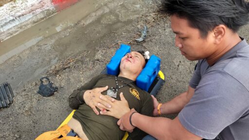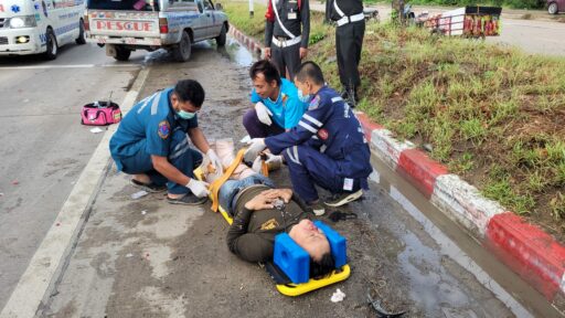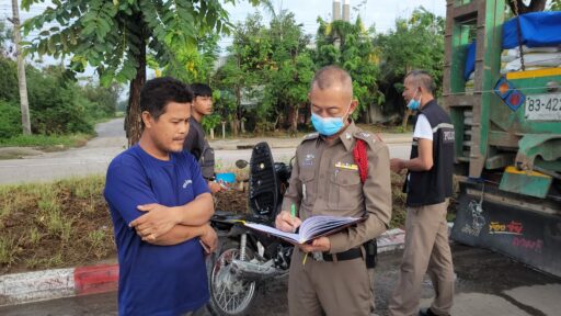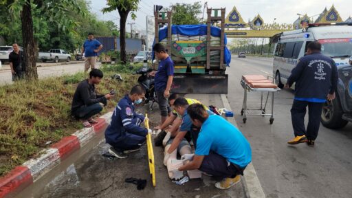เมื่อเวลา 07.15 น. วันที่ 6 เม.ย. พ.ต.ท.กำจัด จันทะเสน สว.(สอบสวน) สภ.ชุมชนมหาวิทยาลัยนเรศวร อ.เมือง จ.พิษณุโลก รับแจ้งมีเหตุรถบรรทุกชนรถ จยย.ทำให้มีผู้บาดเจ็บบนถนนสายพิษณุโลก – นครสวรรค์ ฝั่งขาเข้าเมือง บริเวณสามแยกไฟแดงหน้ามหาวิทยาลัยนเรศวร หมู่ 9 ต.ท่าโพธิ์ อ.เมืองพิษณุโลก ไปตรวจสอบพร้อมด้วยเจ้าหน้าที่กู้ภัยมูลนิธิประสาทบุญสถาน พบรถยนต์บรรทุกสิบล้อ ยี่ห้ออีซูซุ สีขาว ทะเบียน 83-4221 สุพรรณบุรี จอดชิดกับฟุตบอล บรรทุกพันธุ์ข้าวมาเต็มคันรถ และมีรถจักรยานยนต์ยี่ห้อฮอนด้า เวฟ สีดำไม่ติดแผ่นป้ายทะเบียนสภาพใหม่ ล้มอยู่บริเวณท้ายรถบรรทุก ใกล้กันพบผู้บาดเจ็บมีบาดแผลถลอกตามร่างกายและเจ็บปวดขาทั้งสองข้าง เจ้าหน้าที่กู้ภัยช่วยปฐมพยาบาลก่อนนำส่งให้แพทย์รักษาอาการบาดเจ็บที่ รพ.มหาวิทยาลัยนเรศวร ทราบชื่อต่อมาคือ นายวิชาญ ต่ายฝอย อายุ 49 ปี อยู่บ้านเลขที่ 25/3 หมู่ที่ 4 ต.วังอิทก อ.บางระกำ จ.พิษณุโลก