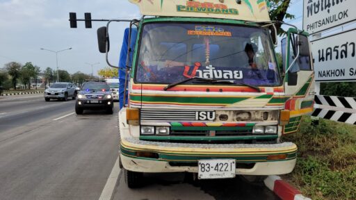 หนุ่มขับรถบรรทุกพันธุ์ข้าวเจอสัญญาณไฟแดงเบรกรถไม่อยู่ ชนรถ จยย.ที่ติดสัญญาณไฟแดงจนคนขับได้รับบาดเจ็บ บริเวณหน้ามหาวิทยาลัยนเรศวร พิษณุโลก