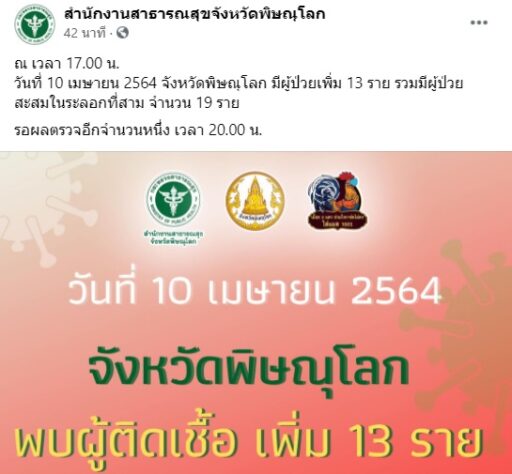 พิษณุโลกพบผู้ป่วยโควิดเพิ่มเป็น 19 ราย