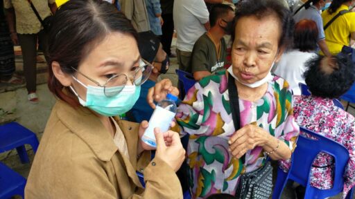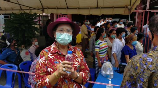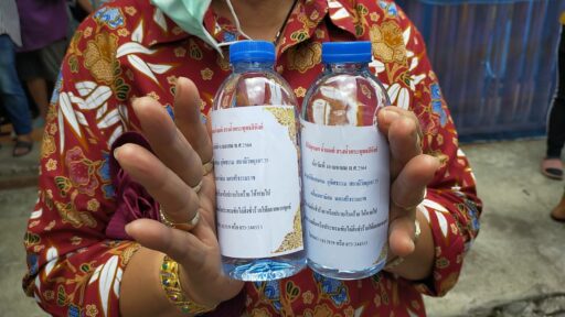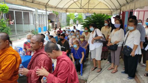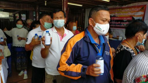 ชาวพุทธเมืองคอนแห่รับน้ำมนต์ศักดิ์สิทธิ์ไว้ป้องกันโรคโควิด-19