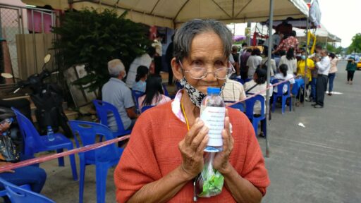 ด้าน นางวรรณา เชาวลิต อายุ 65 ปี อยู่บ้านเลขที่ 177/150 ต.ท่าซัก อ.เมือง จ.นครศรีธรรมราช กล่าวถึงโรคโควิดที่กำลังแพร่ระบาดอยู่นี้ว่า “มันน่ากลัวมาก มันสามารถติดกันได้ทุกคนในครอบครัว เหตุการณ์มีแต่จะเลวร้ายขึ้น ชีวิตทุกคนกำลังแย่ เกิดความยากจนขึ้น เพราะค้าขายไม่ได้ ไม่ว่าสิ่งไหนที่จะสามารถทำให้สบายใจขึ้นได้ก็จะทำ อย่างวันนี้ตั้งใจมารับน้ำมนต์โดยเฉพาะ เพื่อนำไปดื่มกิน ไปประพรมบ้าน พรมศรีษะ และนำไปผสมน้ำอาบ ตามความเชื่อส่วนตัว ที่ว่าจะสามารถช่วยรักษาโรคร้ายได้ เพราะเป็นน้ำที่ผ่านการสวดเสกเราเห็นด้วยตาตนเอง ไม่ใช่น้ำธรรมดา หรือน้ำมนต์ทั่วไปที่อยู่ตามวัด” ขณะที่คุณป้าคนหนึ่งกำลังจะนำน้ำมนต์ที่อยู่ในขันไปร่วมสรงน้ำพระพุทธสิหิงค์ คุณป้าได้พนมมือพร้อมกับถือขันขึ้นเหนือศีรษะ และกล่าวท่องคำคาถาอะไรบางอย่าง โดยขอให้ตนเองมีแต่ความสุขในชีวิตตลอดไป ให้รอดพ้นจากโรคภัยไข้เจ็บ โดยเฉพาะอย่างยิ่งได้ขอให้โรคโควิดนั้นหายไปจากโลกนี้โดยเร็ว