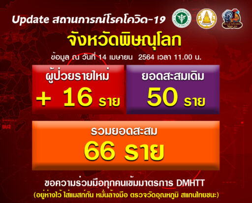 เช้าวันที่ 14 เม.ย.ติดโควิดเพิ่มเป็น 66 ราย
