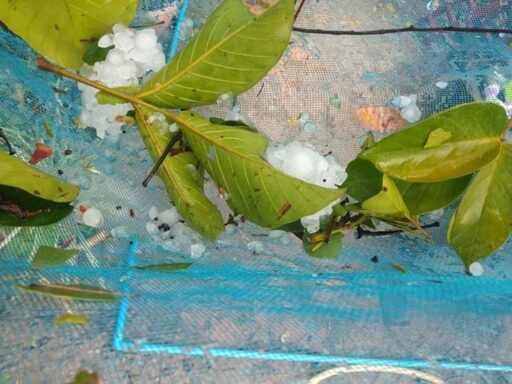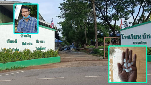 ลูกเห็บตกฝนกระหน่ำลมแรงพัดหลังคาอาคารเรียน บ้านเรือนประชาชนเสียหายหลายหลังคาเรือนที่บ้านนาโพธิ์นาจาน อ.นครไทย กำนันผู้ใหญ่บ้านเร่งสำรวจความเสียหายรายงานผู้บังคับบัญชาตามลำดับชั้น เพื่อให้การช่วยเหลือประชาชนเป็นการเบื้องต้น