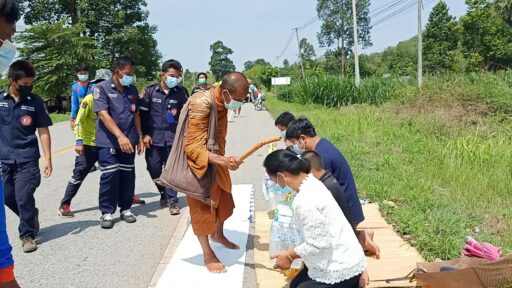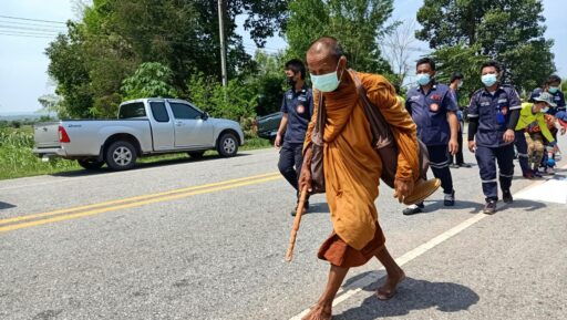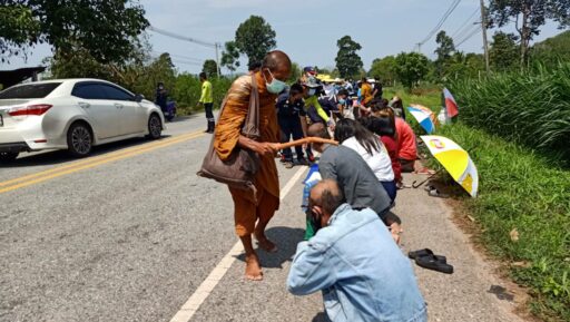วันที่ 15 เม.ย. ผู้สื่อข่าวรายงานว่า ที่บริเวณริมถนนสายชาติตระการ – นครไทย พุทธศาสนิกชนพากันไปนั่งเฝ้ารอ หลวงตาบุญชื่น ปัญญาวุฒิโท อายุ 72 ปี พระธุดงค์สายป่า ที่จะออกเดินแสวงบุญด้วยเท้าเปล่าจากวัดโพธิ์ศรี ม.10 ต.ท่าสะแก อ.ชาติตระการ มุ่งหน้าไปทาง อ.นครไทย ตั้งแต่เช้า โดยทุกคนต้องการที่จะถวายน้ำดื่มและดอกไม้แด่หลวงตาด้วยความศรัทธา และส่วนใหญ่จะปูผ้าให้หลวงตาได้เดินผ่านเพื่อเก็บรอยเท้าไว้เป็นที่ระลึกกราบไหว้บูชา หลังทราบข่าวว่าหลวงตาบุญชื่นเดินเท้าเปล่าจาก จ.นครพนม มาตั้งแต่วันที่ 2 ต.ค.2563 มุ่งหน้าไปทางภาคเหนือสูงสุดที่ จ.เชียงราย แล้วเดินวนมาทาง จ.ลำปาง อุตรดิตถ์ และพิษณุโลก เพื่อกลับเข้าสู่ภาคอีสาน จ.นครพนม รวมระยะทางกว่า 2,000 กิโลเมตร