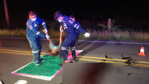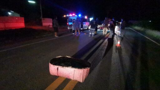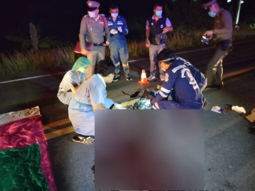 สายสื่อสารตกหย่อนขวางถนนพ่อเฒ่าขับรถมุ่งหน้าไปตลาดสดคาดไม่ทันเห็นชนเข้าอย่างจังร่างกระเด็นหัวฟาดกับพื้นถนนเสียชีวิตคาที่ ก่อนรุ่งอรุณวันนี้