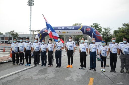 โดยมีการวิ่งผลัดธงชาติไทย คนละ 1 กิโลเมตร ต่อเนื่อง 61 วัน 35 จังหวัด รวมระยะทาง 4,606 กิโลเมตร หรือเทียบเท่าระยะทางจากกรุงเทพฯ ถึงกรุงโตเกียว ประเทศญี่ปุ่น สำหรับเส้นทางการวิ่งธงชาติไทย รวมใจสู่ชัยชนะ หรือ วิ่งผลัดธงชาติไทย ครั้งประวัติศาสตร์นี้ จัดวิ่งขึ้นใน 35 จังหวัด โดยออกสตาร์ทที่กรุงเทพฯ แล้ววิ่งต่อไปยัง จ.สมุทรสงคราม, สมุทรสาคร, เพชรบุรี, ประจวบคีรีขันธ์, ชุมพร, สุราษฏร์ธานี, นครศรีธรรมราช, สงขลา, พัทลุง, ราชบุรี, นครปฐม, กาญจนบุรี, สุพรรณบุรี, ชัยนาท, นครสวรรค์, กำเเพงเพชร, ตาก, ลำปาง, ลำพูน, เชียงใหม่, เเพร่, อุตรดิตถ์, พิษณุโลก, เพชรบูรณ์, ชัยภูมิ, ขอนเเก่น, นครราชสีมา, บุรีรัมย์, สระเเก้ว, จันทบุรี, ระยอง, ชลบุรี และ จ.ฉะเชิงเทรา ไปสิ้นสุดที่สนามบินสุวรรณภูมิ จ.สมุทรปราการ