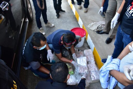 พล.ต.ต.ธรรมนูญ ผบก.ภ.นครศรีธรรมราช เปิดเผยว่า ทั้งนี้เมื่อวันที่ 9 พฤษภาคม 2564 ได้รับแจ้งจากสายลับว่าเครือข่ายยาเสพติดจากพื้นที่ จ.สงขลา จะขนยาเสพติดจากภาคเหนือลงสู่ภาคใต้ โดยใช้รถยนต์กระบะยี่ห้ออีซูซุ รุ่นดีแม็ก สีขาว ทะเบียน กน 3787 เพชรบูรณ์ และรถยนต์กระบะยี่ห้อ อีซูซุ รุ่นดีแม็ก สีดำ ทะเบียน 5 กษ 7343 กรุงเทพฯ เจ้าหน้าที่ชุดจับกุมจึงร่วมกันตรวจสอบเส้นทางการเดินรถของรถยนต์ทั้ง 2 คัน พบว่ารถดังกล่าวเดินทางจะขึ้นไปที่กรุงเทพฯ จึงได้เฝ้าสังเกตการณ์ ตามเส้นทางถนนสายเอเชีย 41 ต่อมาวันที่ 10 พ.ค.พบรถยนต์ยี่ห้อ อีซูซุ รุ่นดีแม็ก สีขาว หมายเลขทะเบียน กน 3787 เพชรบูรณ์ ผ่านด่านตรวจโควิด 19 อ.ท่าชนะ จ.สุราษฎร์ธานี จึงเชิญตัวบุคคลที่มากับรถคันดังกล่าวมาสอบถาม ทราบชื่อ นายไฝ่ศักดิ์ เต๊ะหมาน และ นายมูหัมหมัดหนูด หนีสะเก็ม ทั้งสองคนเป็นชาว จ.สงขลา ทำหน้าที่เป็นรถสำรวจเส้นทาง