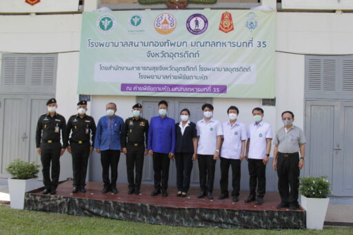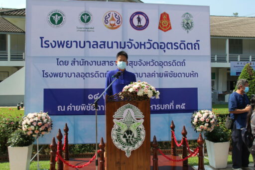 เมื่อวันที่ 14 พ.ค.64 เวลา 09.39 น. ที่อาคารหมวดพลเสนารักษ์ โรงพยาบาลค่ายพิชัยดาบหัก มทบ.35 .อ.เมือง นายผล ดำธรรม ผวจ.อุตรดิตถ์ ประธานเปิด รพ.สนามจังหวัดอุตรดิตถ์ แห่งที่ 1 โดยมี นายแพทย์เกษม ตั้งเกษมสำราญ สาธารณสุขจังหวัดอุตรดิตถ์ กล่าวรายงาน โดยมี นางวันทนา ดำธรรม นายกเหล่ากาชาดฯ และ พล.ต.สัณธวัฒน์ วงศ์วัฒนะ ผบ.มทบ.35 นายพิภัช ประจันเขตต์. รอง ผวจ.อุตรดิตถ์ พ.อ.สมัย ขำพันธ์ ผอ.รพ.ค่ายพิชัยดาบหัก นพ.อายุส ภมะราภา. ผอ.รพ.อุตรดิตถ์ พ.ท.สรารักษ์ ชูสกุล รอง ผอ.รพ.ค่ายพิชัยดาบหัก แพทย์ พยาบาล มูลนิธิ ภาคเอกชน ร่วมงานดังกล่าว