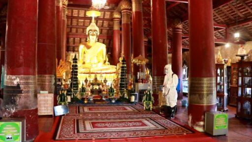 วัดพระศรีรัตนมหาธาตุ วรมหาวิหาร หรือ วัดใหญ่ บวงสรวงหลวงพ่อพระพุทธชินราช ฉีดพ่นยาในวิหาร เตรียมเปิดให้ประชาชนกราบสักการะ พรุ่งนี้ ( 16 พ.ค.) หลังปิดมา 20 วัน เต็ม ป้องกันการแพร่ระบาดของโควิด ขณะที่วัดราชบูรณะก็ฉีดพ่นยาฆ่าเชื้อภายในวิหาร อุโบสถ และรอบบริเวณวัดเช่นกัน