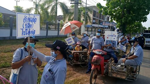 รพ.สต.บ้านเกาะและ อสม. เมืองอุตรดิตถ์ เดินรณรงค์ให้ประชาชนมาฉีดวัคซีน ป้องกันโควิด ด้วยสโลแกรน “ฉีดวัคซีน ดีกว่าฉีด ฟอร์มาลีน” ฉีดแล้ว (ชีวิต )ไปได้ต่อ