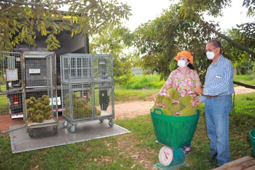 ด้าน นายมนิตย์ สีฆสัมบันน์ ประธานสภาอุตสาหกรรมภาคเหนือจังหวัดพิษณุโลก และ นางศศิวัณย์ ศรีพรหม นายกสมาคมสหพันธ์ท่องเที่ยวภาคเหนือจังหวัดพิษณุโลก พร้อมกับผู้ที่สนใจชื่นชอบรับประทานทุเรียนในจังหวัดพิษณุโลก ได้เดินทางไปศึกษาดูงานและส่งเสริมการท่องเที่ยวเชิงเกษตรนิเวศน์ ที่ศูนย์ถ่ายทอดเทคโนโลยีการปลูกทุเรียนนอกถิ่น ไฮ-ฮิลส์ ฟาร์ม (GAP Certifed ) เพื่อช่วยส่งเสริมการขายทุเรียนทางออนไลน์ให้มีช่องทางเพิ่มมากขึ้น ซึ่ง นางศศิวัณย์ กล่าวว่า ในช่วงการแพร่ระบาดของโควิด จึงได้จัดทริปท่องเที่ยวเชิงเกษตร แบบ New Normal ให้นักท่องเที่ยว ซึ่งมีกลุ่มเป้าหมายใน จ.พิษณุโลก มาชิมและชมทุเรียนแบบถึงสวน โดยมีมาตรการป้องกันโควิด วัดอุณหภูมิร่างกายทางเข้าสวน ใช้เจลล์ล้างมือ และสวมหน้ากากอนามัย เว้นระยะห่าง ในการเข้าชมและชิมทุเรียน ทางสมาคมฯอยากให้เป็นส่วนหนึ่งของการกระตุ้นท่องเที่ยวในจังหวัดควบคู่กันไป ซึ่งสวนทุเรียนบนบ้านรักไทย ต.ชมพู อ.เนินมะปราง จ.พิษณุโลก ถือว่ามีชื่อเสียงอย่างมาก เนื่องจากมีรสชาติที่หวาน กรอบ นักท่องเที่ยวสามารถมาชิมและเลือกซื้อถึงสวนได้ แต่หากไม่สะดวก ก็สามารถสั่งซื้อทาง Facebook High – Hills Farm ไฮ – ฮิลส์ ฟาร์ม Line:ID SORNKATA โทรศัพท์หมายเลข 081-846-9797